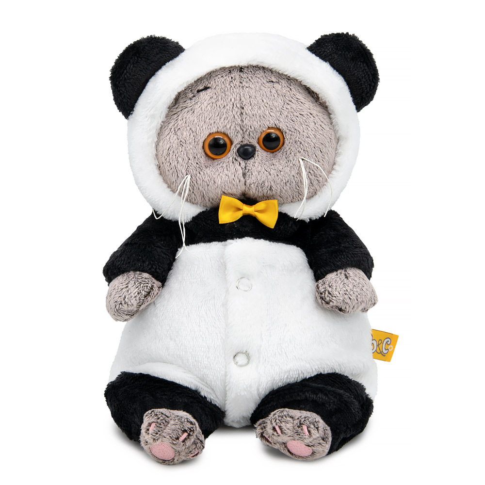 Малыш Басик в милом кугуруми «Панда» из короткого меха чёрного и белого цвета. Также на Басике оранжевый галстук-бабочка.