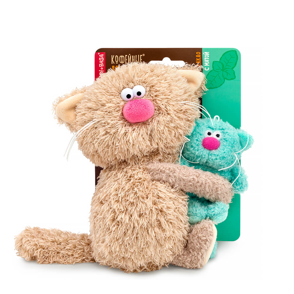 Только в коллекции "Сиропчики" у кофейного кота голова вращается на 360°, благодаря специальному поворотному механизму. У сиропчика-котёнка на голове есть петелька и его можно использовать как брелок.