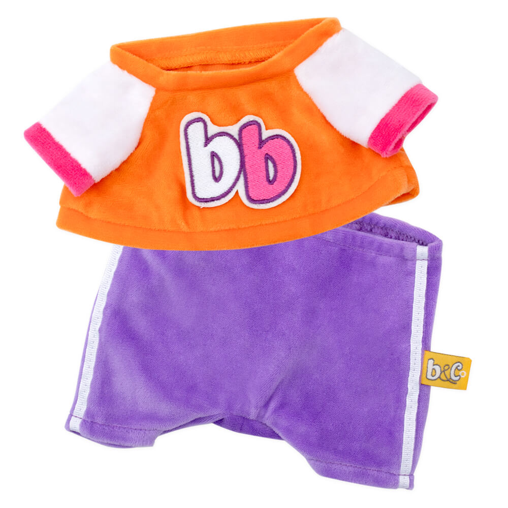 Классный костюмчик в стиле спорт-шик. Свитшот и штанишки из мягкого софта оранжевого, белого, сиреневого и розового цветов. Спереди на свитшоте нашивка в виде инициалов «bb».