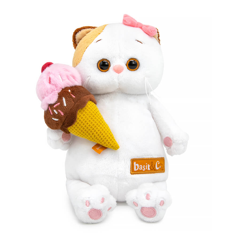 Кошечка представлена в фирменной коробке с дизайном в стиле мультсериала «Кот Басик».