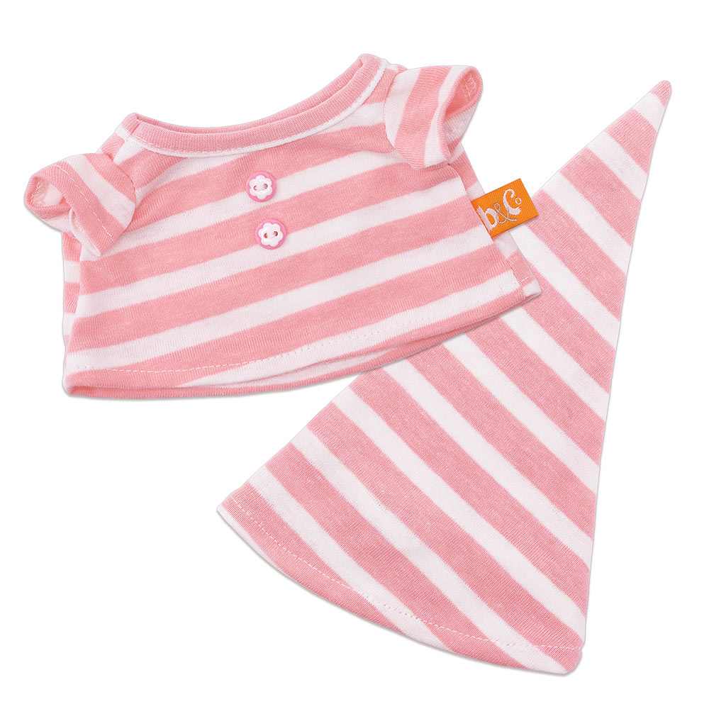 Комплект для сна из мягкого х/б трикотажа в розово-белую полоску для Ли-Ли бейби. Пижамка состоит из футболочки и колпака. На грудке две аккуратные пуговки.