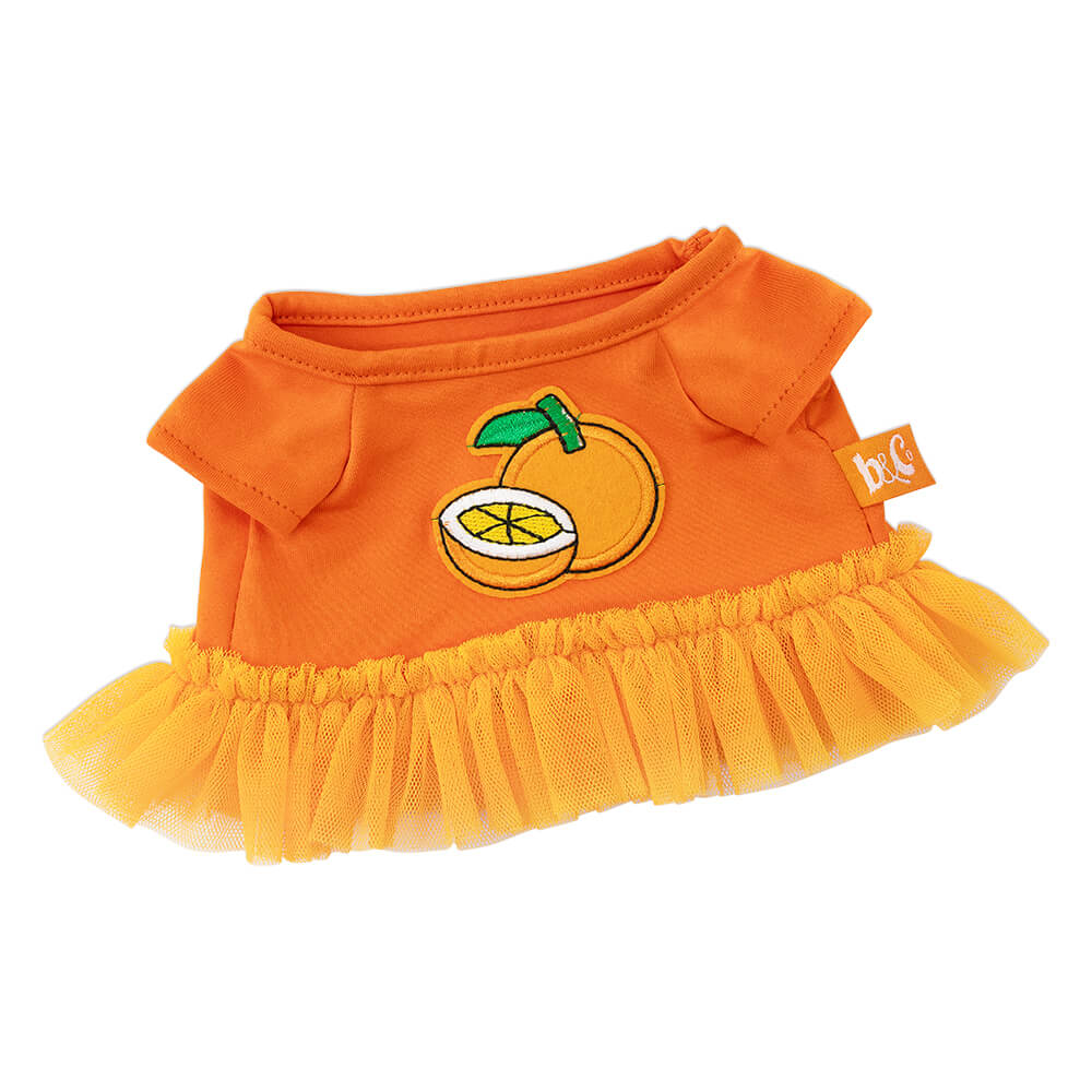 Сочное платьице в апельсиновых оттенках. Платьице сшито из х/б трикотажа и нежной сеточки. Спереди платье украшено вышитой нашивкой в виде спелого апельсина.