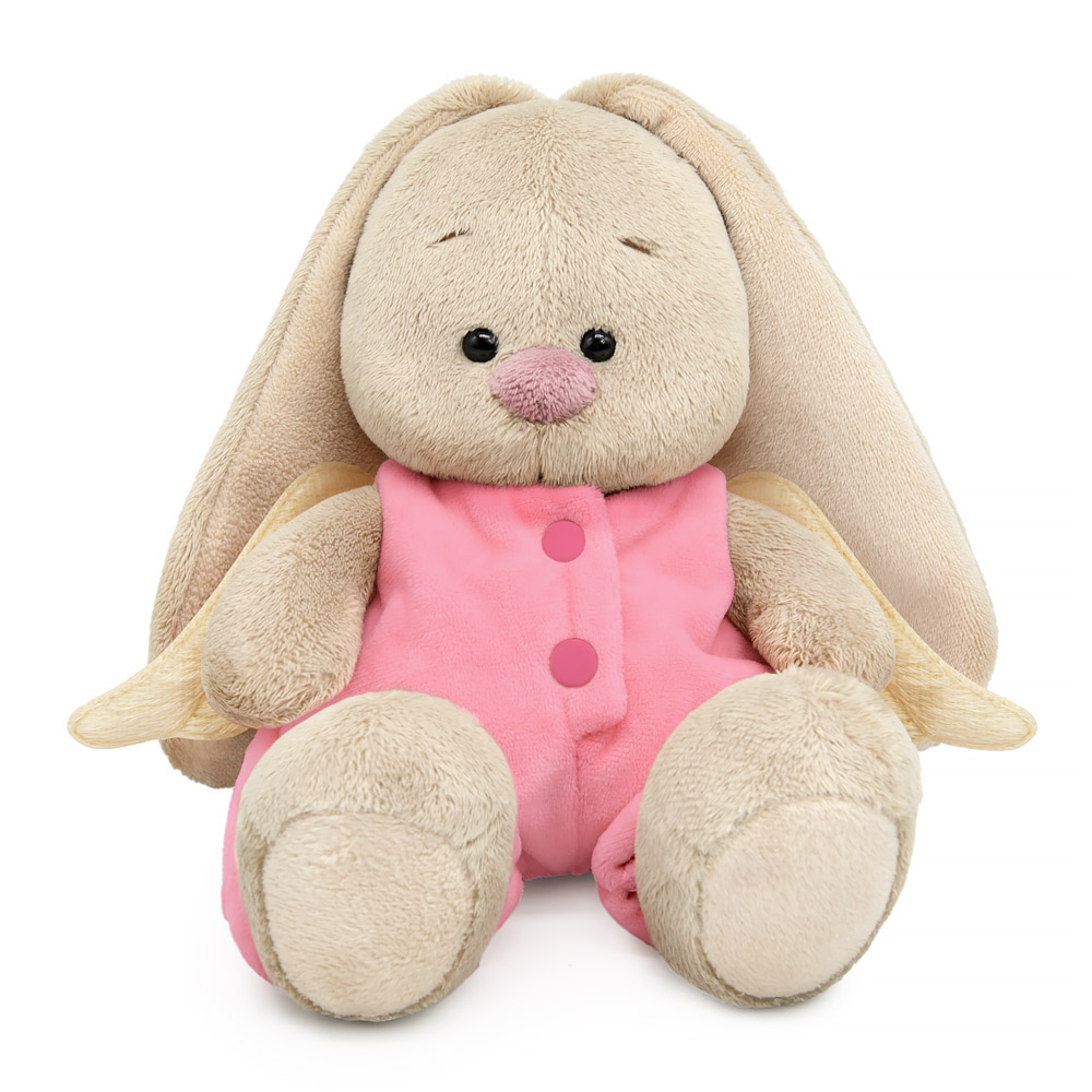 Малышка Зайка Ми в образе милого Ангелочка. На Зайке нежно-розовый комбинезон с крылышками из короткого меха сливочно-молочного оттенка. Комбинезон сшит из софта и застегивается на матовые кнопки.