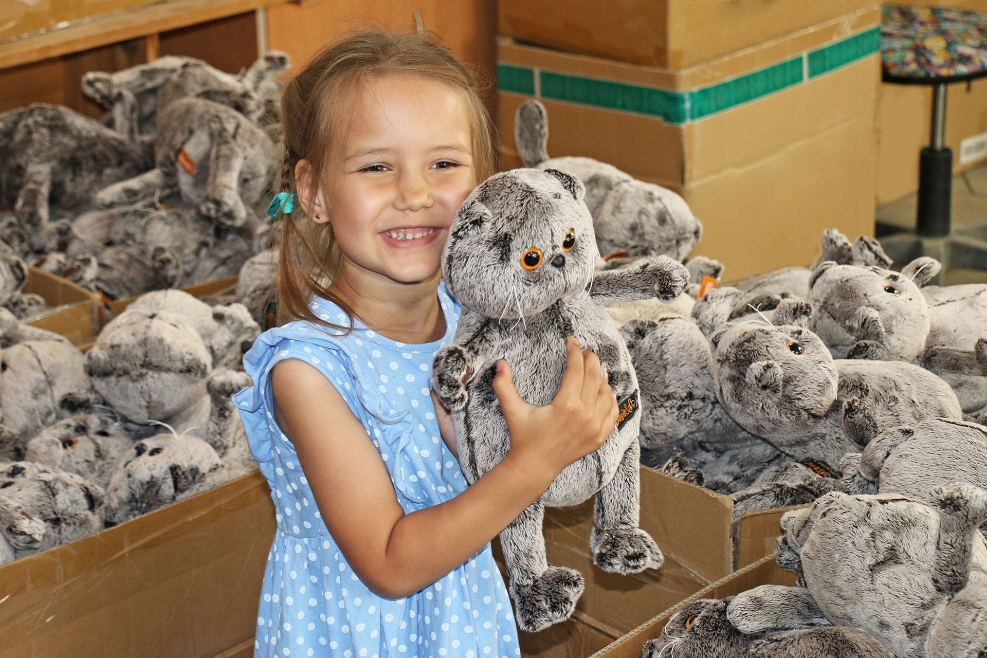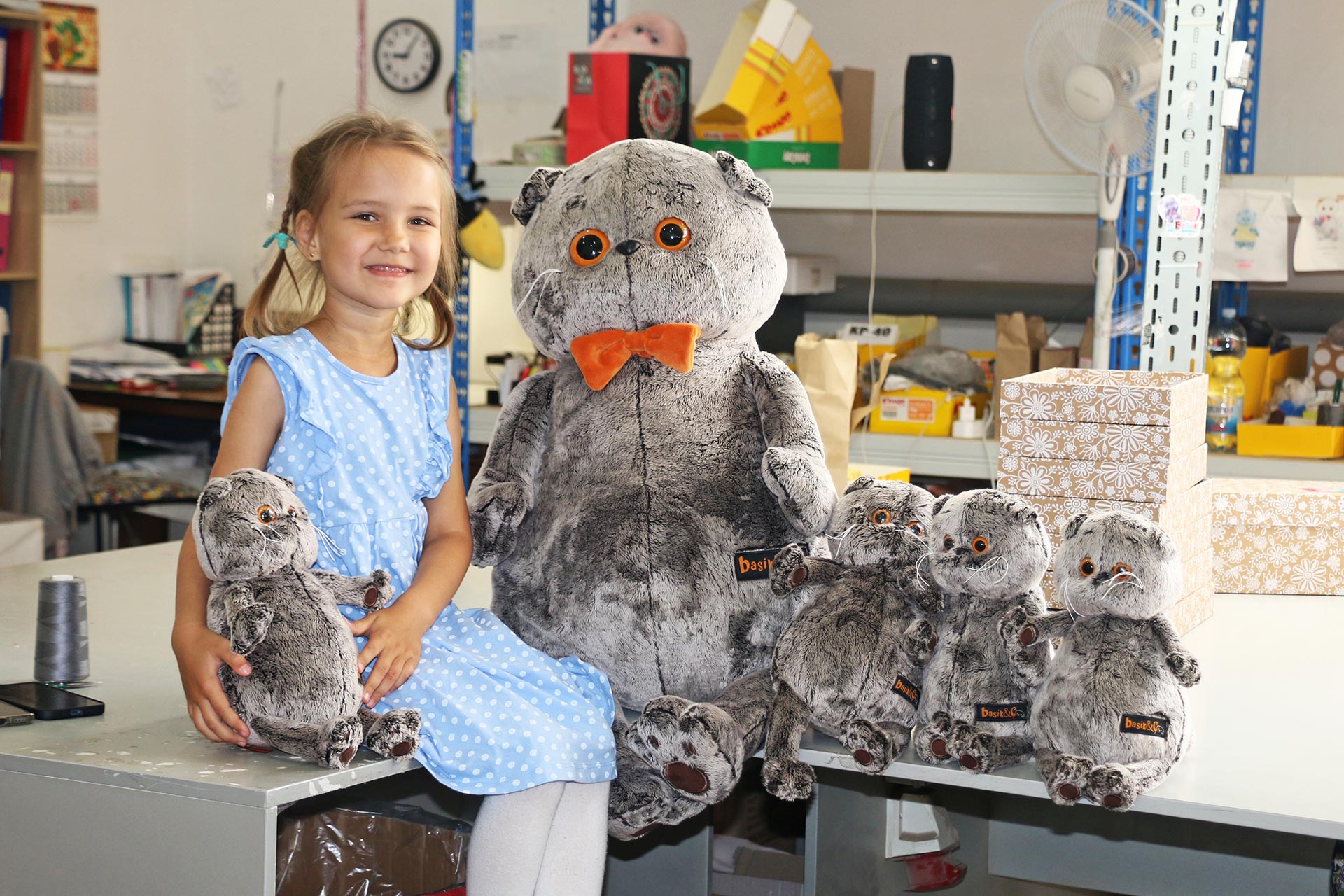 Маленькая девочка Маша из города Щелково любит Басиков и мы пригласили ее на наше производство, чтобы показать, как создается игрушка. Экскурсия прошла на фабрике в Можайске.
