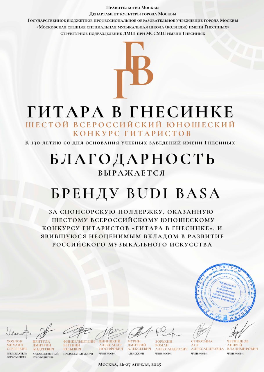 Компания BUDI BASA выступила в качестве спонсора VI Московского открытого конкурса "Гитара в Гнесинке", прошедшего на базе Московской средней специальной музыкальной школы имени Гнесиных.